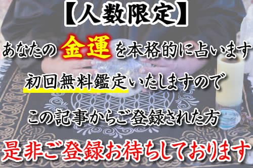 「今がチャンスです!無料で本格的に金運占いができますので、人生逆転したい方は是非占ってみてくださいね!」