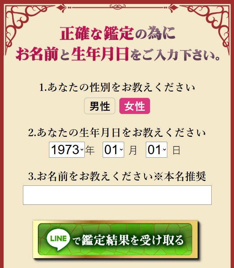 公式サイトに行って、無料鑑定はこちらのボタンをタップしたら、