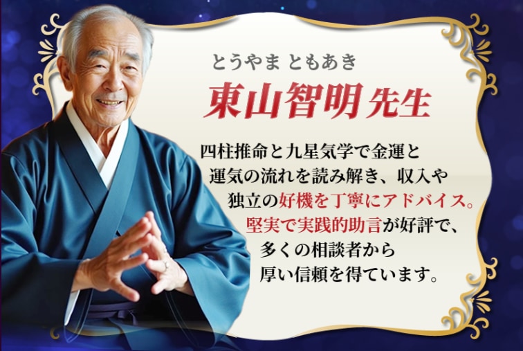 東山先生は四柱推命と九星気学を使って占います!丁寧で細かく診断してくれたので分かりやすい印象です!
