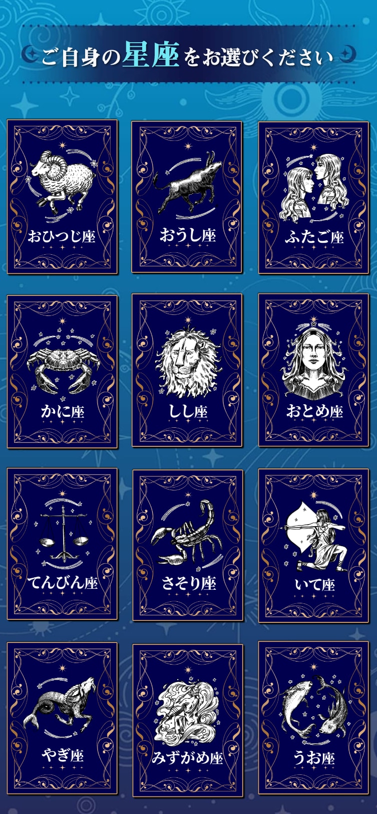 次に、自分の星座ボタンをタップして、