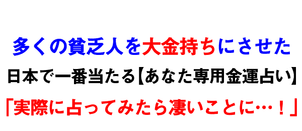 「今回限りのチャンスです!無料であなたに合った本格的鑑定で金運占いができますので、人生逆転したい方は是非占ってみてくださいね!」