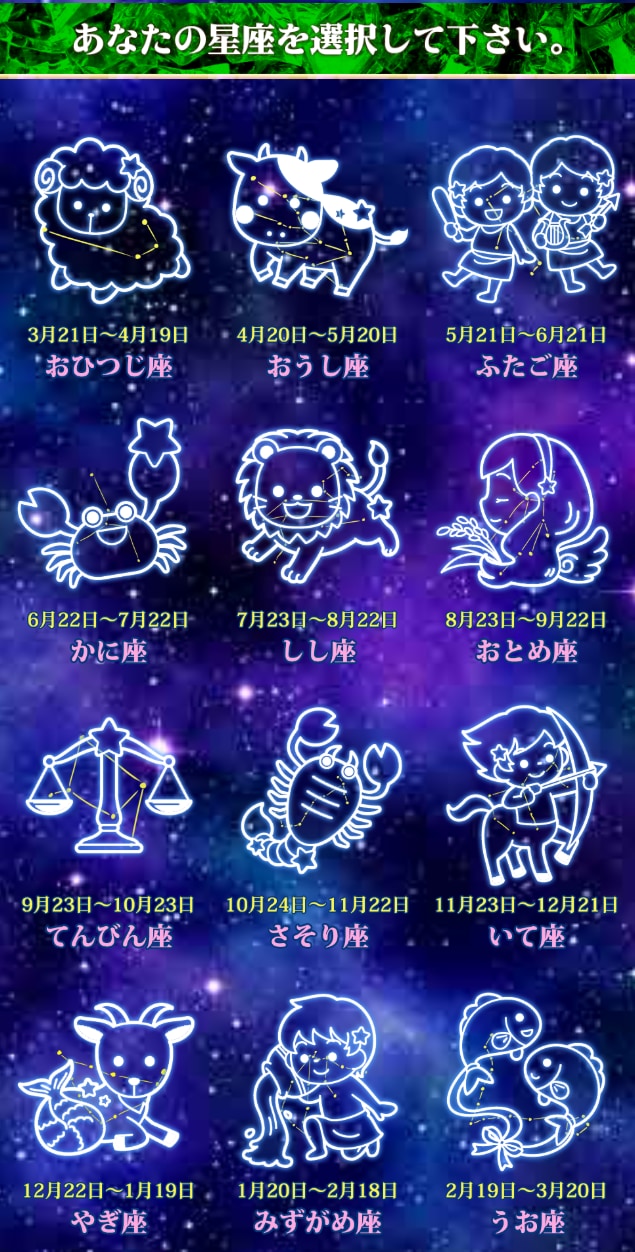 公式サイトに行って、自分の星座をタップしたら、