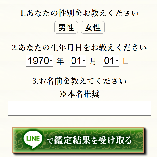 公式サイトに行って、無料鑑定はこちらのボタンをタップしたら、